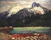 Left to right: Low Tide, Alaska, 24 x 28 inches, oil; Alaska, 1926, 16 x 20 inches, oil; Finn Town -- Low Tide, 16 x 20 inches, oil; After the Gold Rush, 16 x 20 inches, oil; The Valley of Silence, 16 x 20 inches, oil.