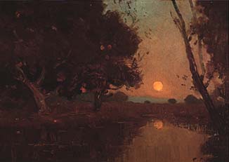 Above Left: Untitled, Moonlit Nocturne, c 1910, oil on canvas panel, 10 x 14 inches