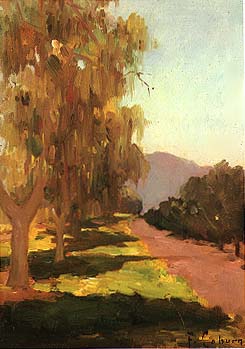 Above Left: Sunpath with Shade, c. 1910-15, oil on cardbaord, 10 x 7 inches