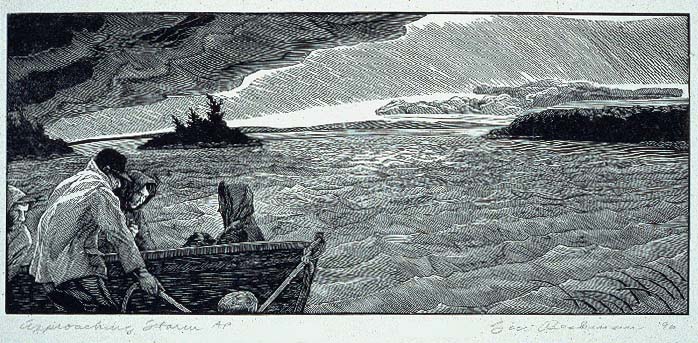 Right: Siri Beckman, Maine, Approaching Storm, wood engraving
