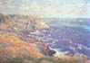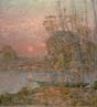 The two remaining galleries in The Lure of Lyme will compare and contrast Tonalism and Impressionism, two very different approaches to painting light. Tonalists with their subtle and restrained palette are represented in Henry C. White's Moonrise, Autumn, Henry Ward Ranger's Autumn Woodlands, and Louis Paul Dessar's The Toilers. Each of these works shows the Tonalists' love of ambient indirect light and muted colors creating subtle, poetic landscapes. By contrast, Impressionist pieces such as Childe Hassam's Late Afternoon, Sunset and William Robinson's Laurel depict shimmering, direct sunlight.