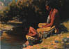 Images from the Collection of Dan and Susan Berman from top to bottom (click on thumbnail images to enlarge them): Thomas Moran, Virgin del Rio -- Southern Utah, 1917, oil on canvas, 20 x 16 inches; Joseph H. Sharp, Taos Indian Youth,oil on canvas, 17 x 14 inches; Eanger Irving Couse, A Brave and His Son, oil on canvas, 12 x 16 inches; Carl Rungius, Alaskan Moose, oil on canvas, 25 x 34 inches; Victor Hugo LeCheminant, Villa Pereta, October 23, 1944