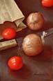 Images from left to right (all by David Hardy): "Red Amaryllis," oil on linen canvas, 9 x 9 inches, courtesy John Pence Galiery, San Francisco; "Ginger Jar," oil on linen canvas, 12 x 16 inches, collection of Kay Oberbilling; "New Life," oil on linen canvas, 9 x 16 inches, collection of Mr. & Mrs. Peter Smith; "Breakfast Rose," oil on gesso panel, 12 x 12 inches, courtesy John Pence Gallery, San Francisco; "Waiting to Begin," oil on linen canvas, 9 x 14 inches, courtesy John Pence Gallery, San Francisco