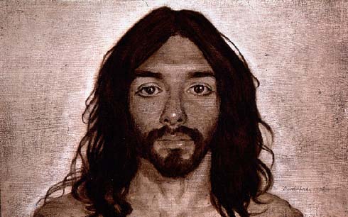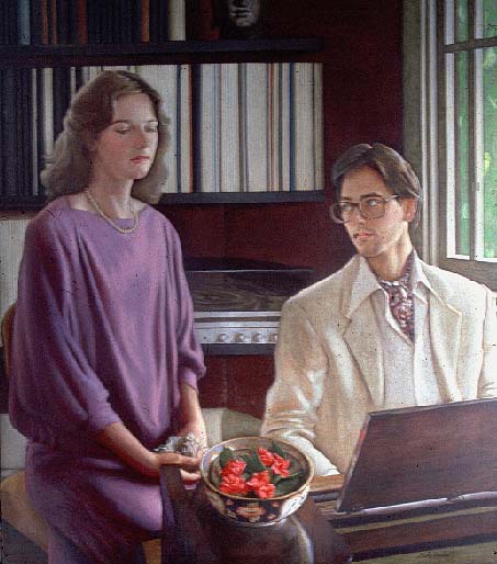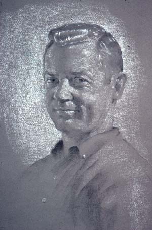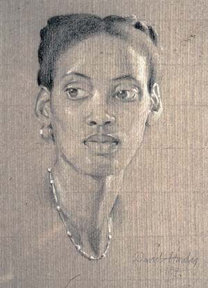 Images from left to right (all by David Hardy): "Portrait of Gene LaRue,"charcoal and chalk on Italian paper, 18 x 25 inches, collection of Mr. & Mrs. Gene LaRue; "Drawing of a Young Woman," charcoal and chalk on Italian paper, 9 x 12 inches, private collection; "Song of Love", oil on linen canvas, 40 x 46 inches, courtesy Gallery One, Mendocino