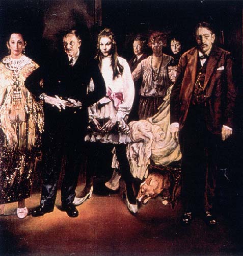 From top to bottom (click on thumbnail images to enlarge them): Monet and Me at the Venice Canals, 1977, oil on linen, 80 x 60 inches, BankAmerica Corporation Art Collection, San Francisco, (#40371); Self-Portrait in Titus's Hat, 1983, oil on canvas, 78 x 42 inches, collection of Kirby and Priscilla Smith; Thanatopsis, 1983, oil on canvas, 70 x 70 inches, Santa Barbara Museum of Art, gift of Harry W. Saunders, 1991.159; Anomie, 1969-70, oil on canvas, 70 x 70 inches, Whitney Museum of American Art, New York, gift of an anonymous donor, 71.227
