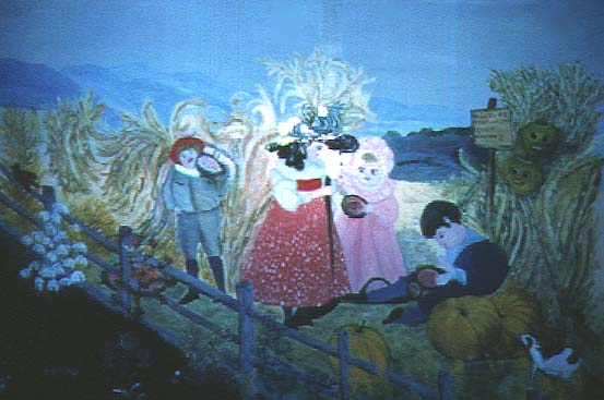 Memories of Country Ways and Marketing and Acclaim: The Grandma Moses Image. Images of happier, simpler times before the Great War, the Depression, and World War II are here: apple butter making, tapping maple trees, milking cows, shoeing horses--yet Moses also knew how to cope with city slickers. A "marketing corner" displays her many awards, products, fabric designs, and a taped interview with Edward R. Murrow.