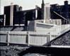 In photographs such as Brooklyn Bridge, for example, the photographer's democratic technique captures the specific characteristics of the bridge, along with a whole universe of supporting details that make for an incredibly rich evocation of the urban fabric. Here and there in the photographs are familiar glimpses of classic New York - stationary delivery trucks, chaotic signage, the Chrysler building in the distance beyond jumbled rooftops. But, more importantly, each image displays a formalist's love of structure, pattern, and form in the city's often random juxtaposition of architectural styles, textures, and materials.