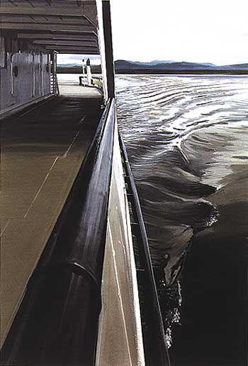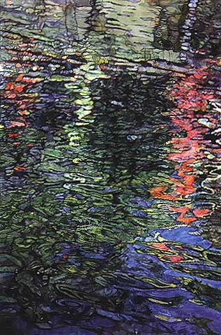 Images from left to right: Joseph Raffael, Water Reflections III, 1994, watercolor, 68 x 44 1/2 inches, Courtesy of Nancy Hoffman Gallery, New York; Richard Estes, Lake Champlain III, 1996, oil on paper, 19 1/2 x 13 1/2 inches, Courtesy of Marlborough Gallery, New York; John Alexander, Atlantic Beach, 1997, oil on canvas, 40 x 60 inches, Courtesy of Marlborough Gallery, New York; Wade Hoefer, Sacrastrium, 1999, oil on canvas, 72 x 72 inches, Courtesy of Patricia Faure Gallery, Santa Monica, CA; Robert Stackhouse, On the Deep, 1995, watercolor diptych, 119 1/4 x 80 3/8 inches, two panels, Courtesy of Robert Stackhouse and Morgan Gallery, Kansas City, MO.