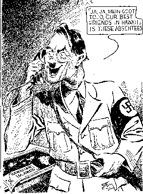 (left: 1943 political cartoons in The Honolulu Advertiser)