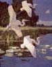 Images from top to bottom: Walter Elmer Schofield, Winter, 1899, oil on canvas, 29 1/2 x 36 inches, Pennsylvania Academy of the Fine Arts, Henry D. Gilpin Fund; Childe Hassam, Cat Boats, Newport, 1901, oil on canvas, Pennsylvania Academy of the Fine Arts, Joseph E. Temple Fund; Frank Benson, Great White Herons, 1933, oil on canvas, 44 x 36 1/8 inches, Pennsylvania Academy of the Fine Arts, Joseph E. Temple Fund