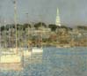 As a special feature of this display, a major work by the much beloved French impressionist Claude Monet--Spring in Giverny (I890)--will be on loan to the Academy from the Sterling and Francine Clark Art Institute in Williamstown, Massachusetts. Monet, of all the French painters, exerted the greatest influence on the American impressionists, teaching and befriending many of them during their time abroad. Twachtman's work and approach, in particular, are highly suggestive of Monet's, from the serial imagery of his Greenwich. Connecticut, farm--which paralleled the French painter's views of Giverny--to the more technically sophisticated, nearly abstract work of his later years. Significantly, the two artists exhibited together at New York' s American Art Galleries, in 1893, and Twachtman's work was often compared to Monet's by American critics. The generous loan of Spring in Giverny, thus, provides both a critical context and an important example of artistic cross-fertilization for the Academy's impressionist displays.