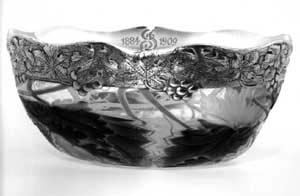 Tiffany Studios and Tiffany & Co., New York, NY; Bowl With Silver Rim, ca. 1909, blown glass cameo-carved with repousse sterling silver rim, 4 3/4 in. high, 10 3/4 in. rim diameter.
