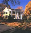 Left: Miss Florence's home, The Florence Griswold Museum today; photo courtesy of Florence Griswold Museum. Right: George Brainerd Burr, Old Lyme Garden, oil on panel, 12 x 9 inches, Florence Griswold Museum, Connecticut