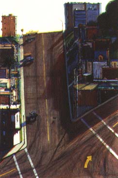 The exhibition testifies to the variety and stature of talented artists who have studied at CSUS from the University's early years to the present day. Wayne Thiebaud has earned international acclaim for his still life, portrait, and cityscape paintings. Although ostensibly realistic, the subjects of his earlier compositions are shown under intense light, with brightly-hued shadows and sumptuously applied paint. In contrast, in his later paintings of San Francisco scenes, such as Street and Shadow, 1982-3, 1996, Thiebaud exaggerates the city's steep hills and heightens colors to create visually stimulating compositions.