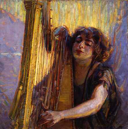 (above: Donna Schuster, O'er Waiting Harp Strings, 1926, Oil on canvas, 30 x 30 inches. Laguna Art Museum Collection Gift of Catherine Jackson 1954.001)