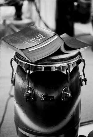 (above: Chester Higgins, Jr., Bible and Drum, 1989, Digital photographic print, 14 x 17 inches. Courtesy of the Artist)