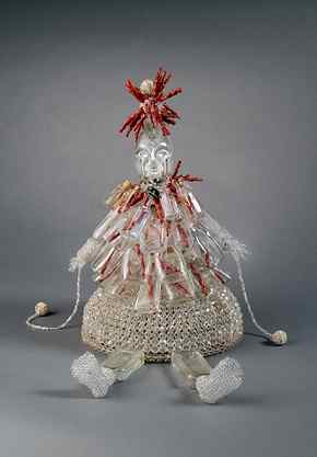 (above: Joyce J. Scott, Inkisi: St. John the Conqueror, 2009, Collected glass bottles, glass beads, wire, thread, coral., 18 1/2 x 24 1/2 x 18 1/2 inches. Courtesy of Goya Contemporary)