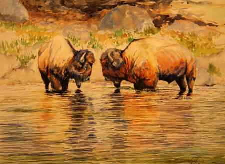 " Hunting and fly-fishing has always been a passion for me since I placed my first order from "Herters" catalog, read "Hunter" by John Hunter, tied my first fly and shot my first hunting rifle -- all by the ripe old age of 12. Growing up on a ranch in Northern California gave me the opportunity to explore the natural world on a daily basis, providing the outdoor experiences that have shaped a lifelong endeavor." recalls Tunkis. All of this has influenced his present work in a traditional impressionistic style of watercolor on paper.