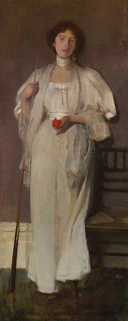 By 1875 the Shannons were living in St. Catharines, Ontario, Canada. It was there that James Jebusa Shannon's passion for art emerged. Although initially reluctant, Patrick Shannon permitted his son to take art lessons with a local painter, William E. Wright, whose encouragement ultimately led to the decision that the aspiring artist would go to England for formal study. Thus, in 1878, at the age of sixteen, Shannon enrolled at the South Kensington School in London (now the Royal College of Art), where he trained chiefly with Sir Edward John Poynter (1836-1919) until 1881. Shannon's three years under Poynter's guidance brought him significant accolades, including the school's gold medal for drawing, a prize that prompted two commissions from Queen Victoria. The two paintings, The Honourable Horatia Stopford and Mrs. Henry Bourke, were shown respectively at the 1881 and 1882 annual exhibitions of the Royal Academy of Arts, London.[4] Although both portraits reveal the workings of an as yet unsophisticated hand, the prestige attached to painting for the queen convinced Shannon to remain in England and to specialize in portraiture.