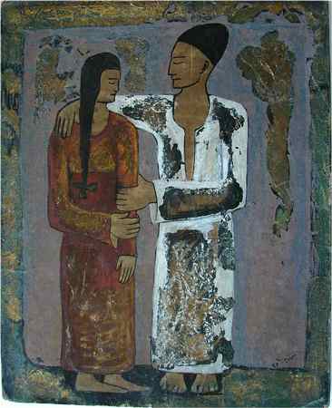 (above: Kamal Youssef (American, b. Egypt, 1923), Union, 1949, Mixed media on board, 12 x 9 inches)