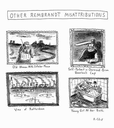 (above: Roz Chast, Other Rembrandt Misattributions, 1995; Ink and wash on paper, 8 x 12 inches; Bruce Museum, Greenwich, CT; Gift of the Melvin R. Seiden Collection, 2006.47.01; Photo by Paul Mutino)