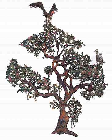 (above: Gina Phillips, Tree No. 2, 2010, fabric thread, ink and paint, 116 x 99 inches. Frederick R. Weisman Art Foundation)