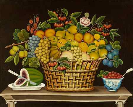 probably New England, Still Life with Basket of Fruit, 1830-1850,