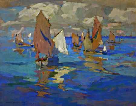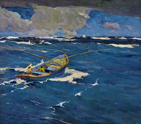 (above: Armin Hansen, Drifting, n.d. Oil on canvas, 28 x 36 inches. Collection of Donna and Mark Salzberg. Image protected by copyright and courtesy Pomegranate Communications, Inc.)