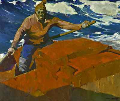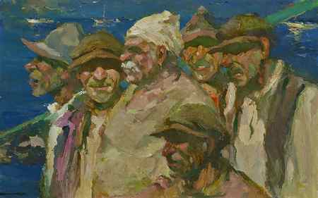(above: Armin Hansen, Monterey Fishermen, n.d. Oil on canvas, 15 x 24 inches. Collection of Donna and Mark Salzberg. Image protected by copyright and courtesy Pomegranate Communications, Inc.)