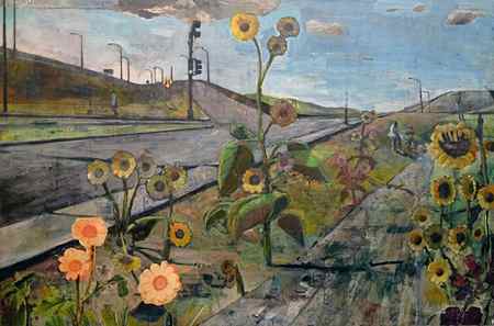 oil and wax on wood panel, 48 x 72 inches. Collection of the Flint Institute