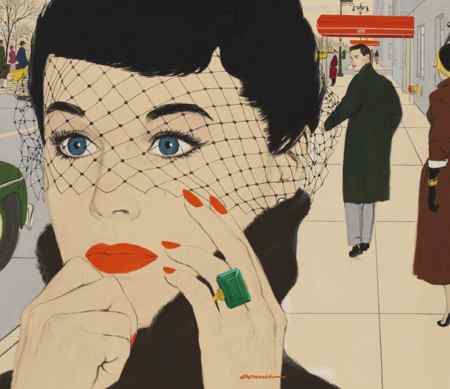 Speaking about Conner's stylish depictions of women, Mr. Brown observes: "It was not uncommon for ladies to go in to a hairdresser, hold out an illustration torn out of a magazine, and say 'I want my hair to look like that!'" Connner's illustrations set the fashion, but also offered a model to which women could aspire, that was also within their reach. (left: Mac Conner, Illustration for "Don't Be Like Me" in Collier's, September 8, 1953. Gouache on illustration board. © Mac Conner. Courtesy of the artist)