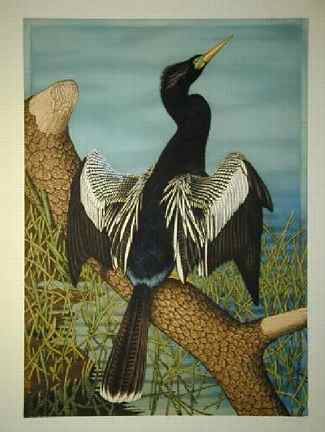 (above: John Costin, Anhinga, 1995, hand-colored etching. © John Costin)