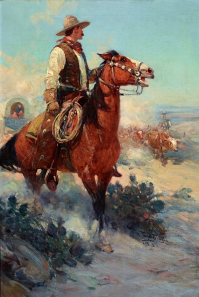 (above: Frank Tenney Johnson, The Trail Boss, 1920, oil on canvas, 30 x 20 1/4 inches, Denver Art Museum, Roath Collection, 2013.107)