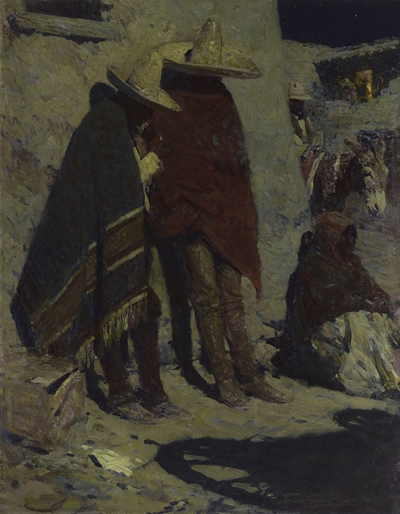 (above: Frank Tenney Johnson, Beneath the Southern Moon. c. 1923, 0il on canvas. Denver Art Museum, Funds from the DAM Westerners and, by exchange, the Roath Collection and the William Sr. and Dorothy Harmsen Collection. 2022.45.)