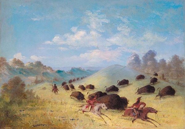 (above: George Catlin, Comanche Indians Chasing Buffalo with Lances and Bows, c. 1846-48, oil on canvas, 19.5 x 27.5 inches, Smithsonian American Art Museum, 1985.66.564. Public domain, via Wikimedia Commons*)
