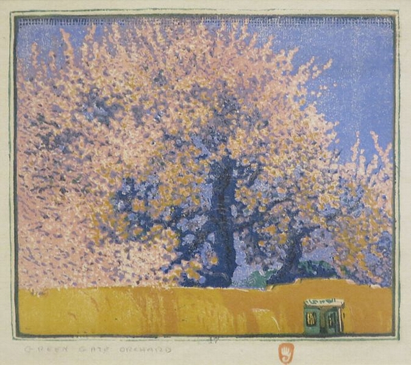 (above: Gustave Baumann, Green Gate Orchard, 1923, wood block print, private collection. Public domain, via Wikimedia Commons*)