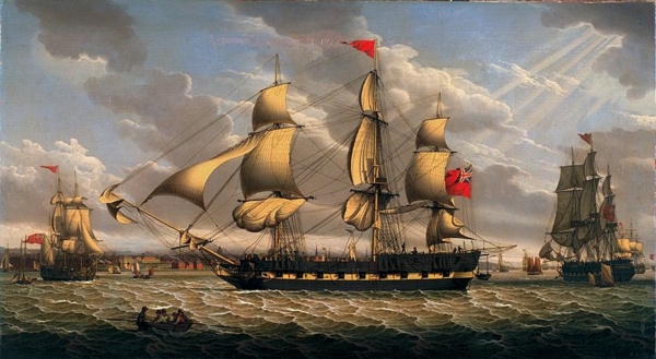 (above: Robert Salmon, British Merchantman in the River Mersey off Liverpool, 1809, oil on canvas, 27.9 x 50.6 inches, De Young Museum. Public domain, via Wikimedia Commons*)