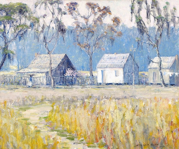 (above: William Posey Silva, Cabins, South Carolina Low Country, 1935, oil on canvas mounted on Masonite, 25.1 x 30 inches, Johnson Collection, Spartanburg, South Carolina. Public domain, via Wikimedia Commons*)