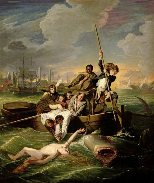 (above: John Singleton Copley, Watson and the Shark, c. 1782, oil on canvas, 35.9 x 30.5 inches, Detroit Institute of Arts, Founders Society Purchase, Dexter M. Ferry, Jr. Fund. Public domain, via Wikimedia Commons*)