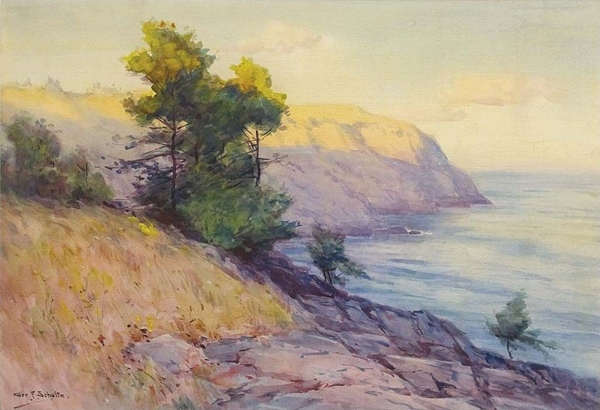 (above: George Schultz, Monhegan Headland, c. 1910, watercolor on paper, 19 x 28 inches, Monhegan Museum of Art & History. Public domain, via Wikimedia Commons*)