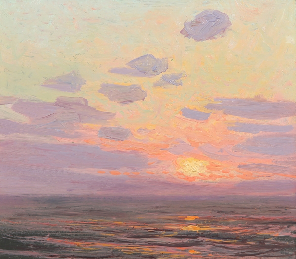 (above: Frank Cuprien, Sunset #2, 1938, oil on Masonite, 9 x 10 inches, Laguna Art Museum. Gift of the Frank W. Cuprien Estate. Image courtesy of Laguna Art Museum.)