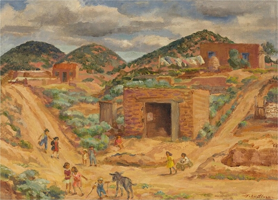 (above: John Sloan, Crossways, Santa Fe, 1940, oil on masonite, 17.5 x 24 inches, Delaware Art Museum, 1163. Public domain, via Wikimedia Commons*)