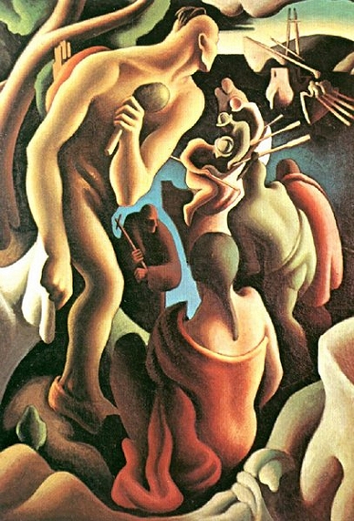 (above: Thomas Hart Benton, People of Chilmark (Figure composition), 1920, oil on canvas, 65.5 x 77.6 inches, Hirshhorn Museum and Sculpture Garden, The Joseph H. Hirshhorn Bequest, 1966, 66.468. Public domain, via Wikimedia Commons*)