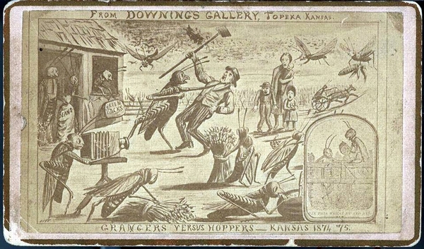 showing Kansas farmers battling locusts, 1874-1875. Public