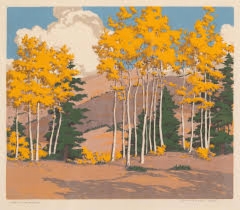 (above: Norma Bassett Hall (1888-1957), Aspen and Spruce, c. 1940, Serigraph, Courtesy Mark Sublette Medicine Man Gallery)