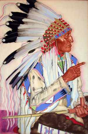 The 1920s brought a radical shift in the depiction of Montana's indigenous people through the work of Winold Reiss (1886-1953). Reiss's work was a departure from the romanticized, "vanishing Indian" tropes common in earlier frontier art. Instead, he utilized strong graphic lines, bold color blocking, and Art Deco motifs to present his subjects as vibrant, contemporary individuals.
