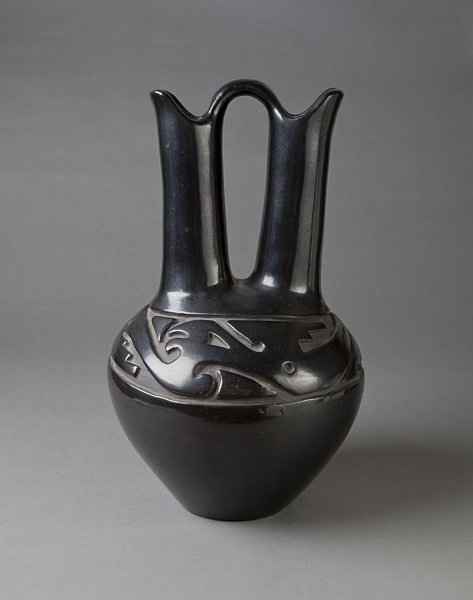 (above: Margaret Tafoya, Wedding Vase, Santa Clara Pueblo, New Mexico, c. 1970, oil on canvas, 22.5 x 42 inches, Bowers Museum, Anonymous Donor. Public domain, via Wikimedia Commons**)