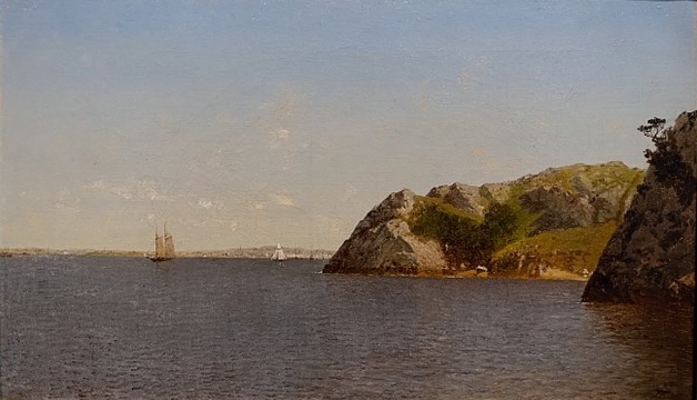 (above: John Frederick Kensett, Newport, Rhode Island (Beacon Rock), 1872, oil on canvas, 12 x 20.5 inches, Dallas Museum of Art, gift of Mrs. Eugene McDermott. Public domain, via Wikimedia Commons*)
