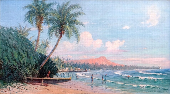 (above: D. Howard Hitchcock, Waikiki Beach, Diamond Head, Oahu, 1898. Private Collection. Public Domain via Wikimedia Commons**)