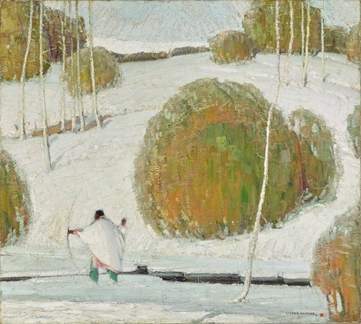 (above: Victor Higgins, Game Hunter/Snow, c. 1922, 0il on canvas, 26 3/8 x 29 1/2 inches, Denver Art Museum, William Sr. and Dorothy Harmsen Collection, 2001.440)